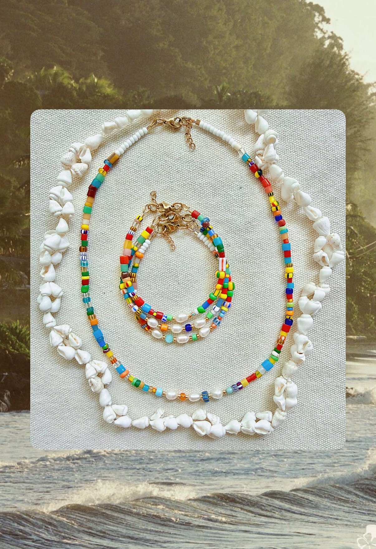 Our vintage Christmas trade beads with freshwater pearls adds warm and texture to any jewellery layer.