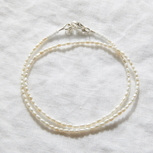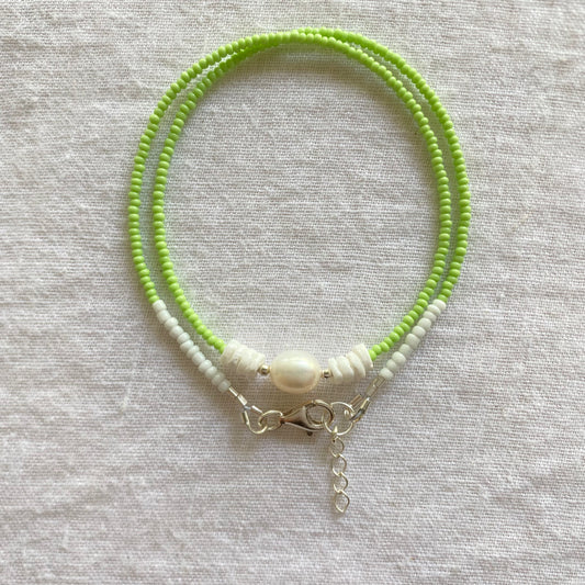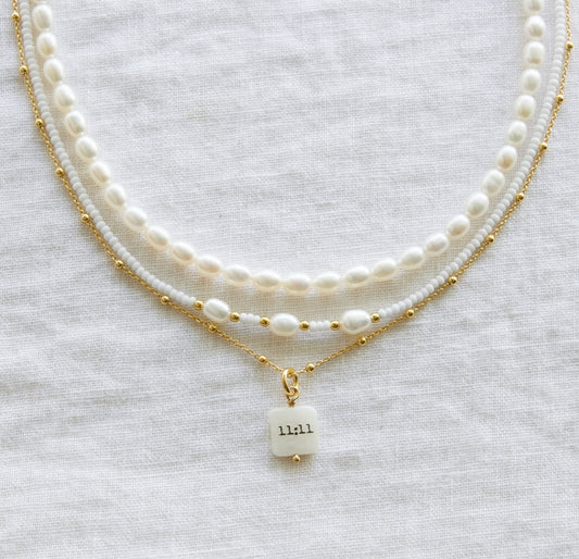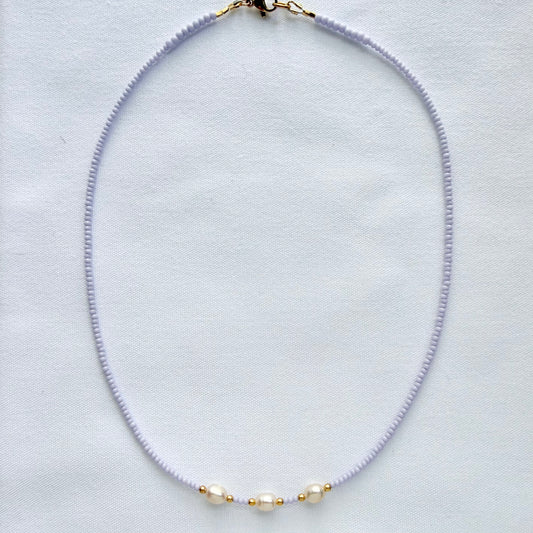 Rainbow sky blue beaded necklace with cultured freshwater pearls