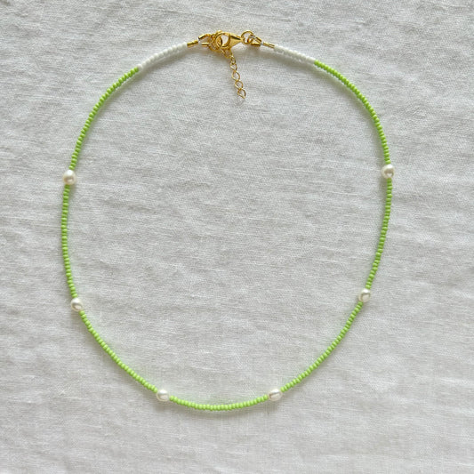 Mint green bead necklace with Freshwater pearls