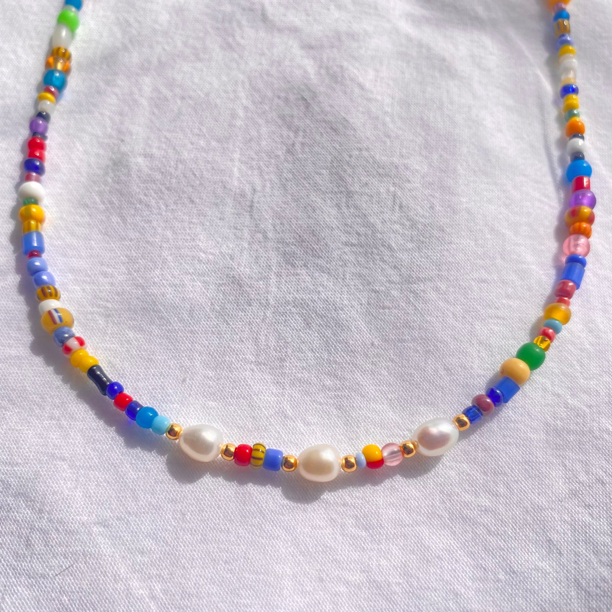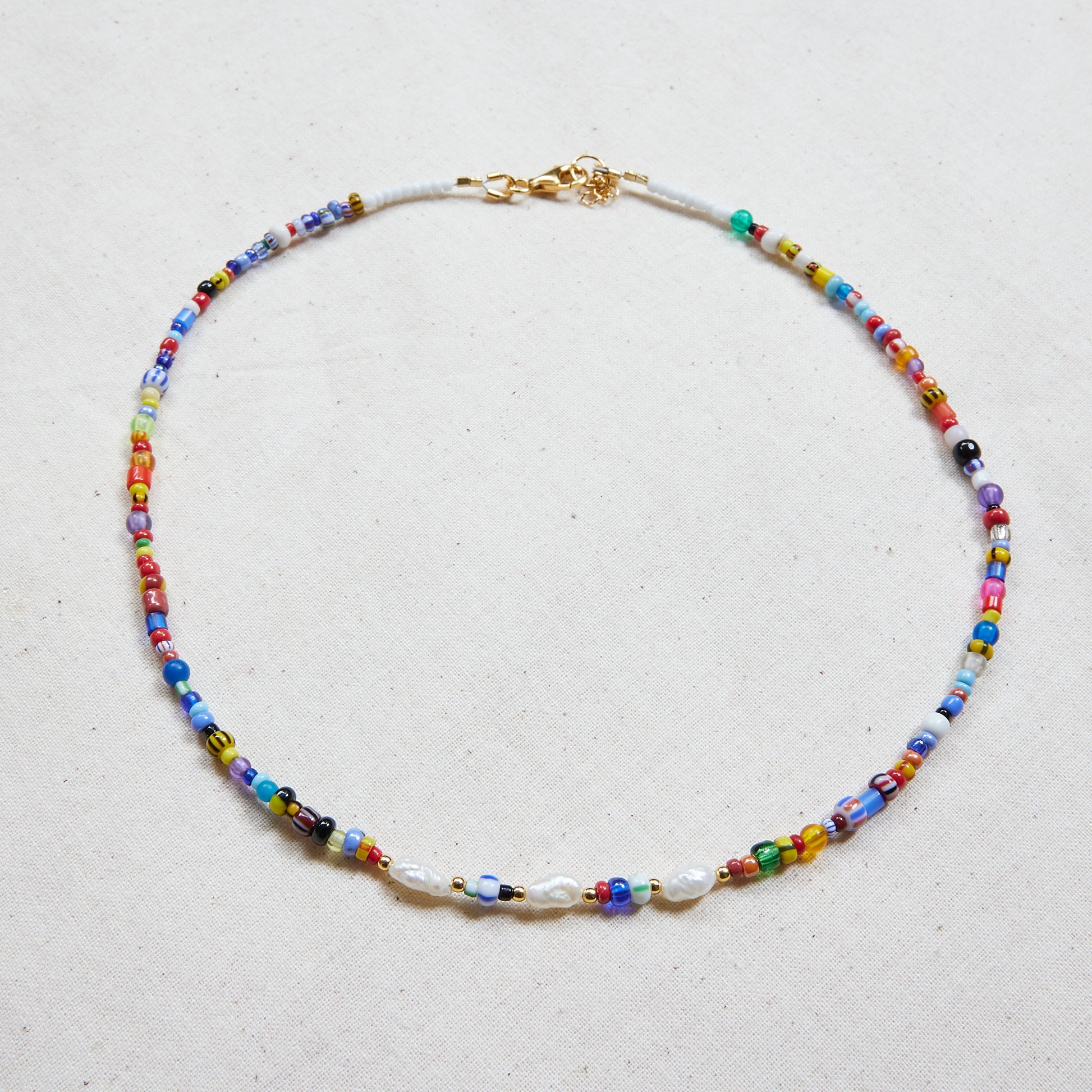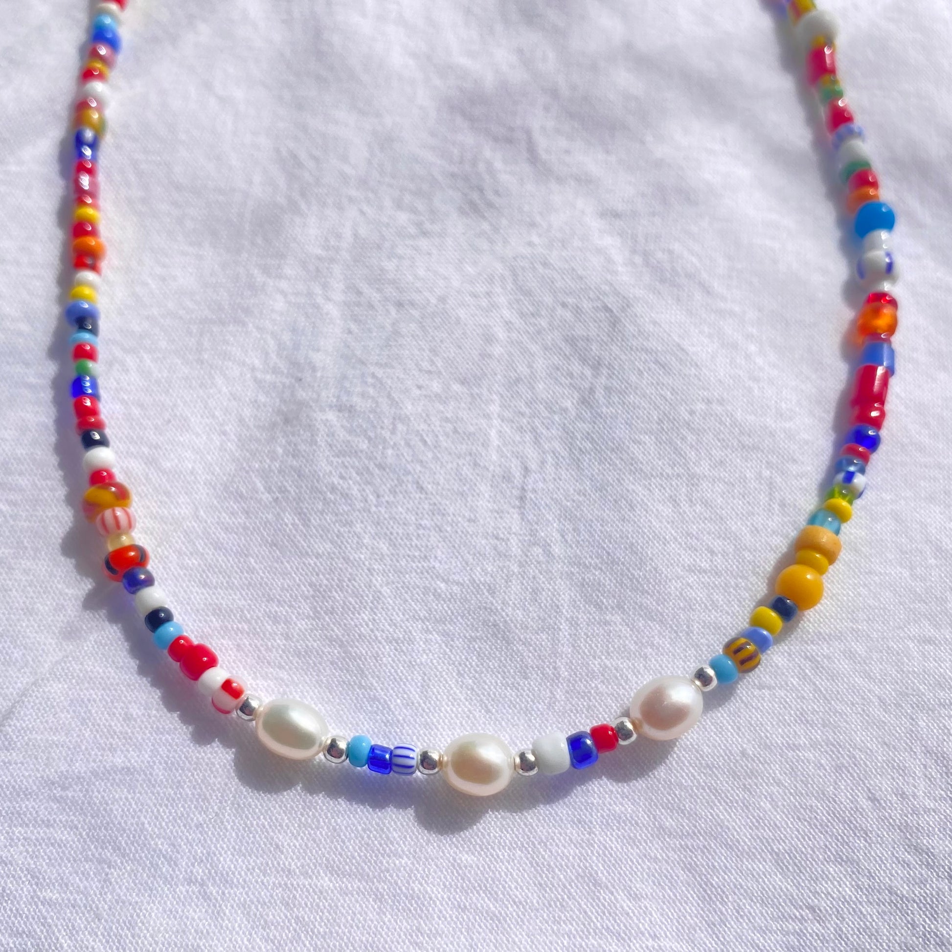 Vintage Christmas African trade beaded necklace with freshwater cultured pearls