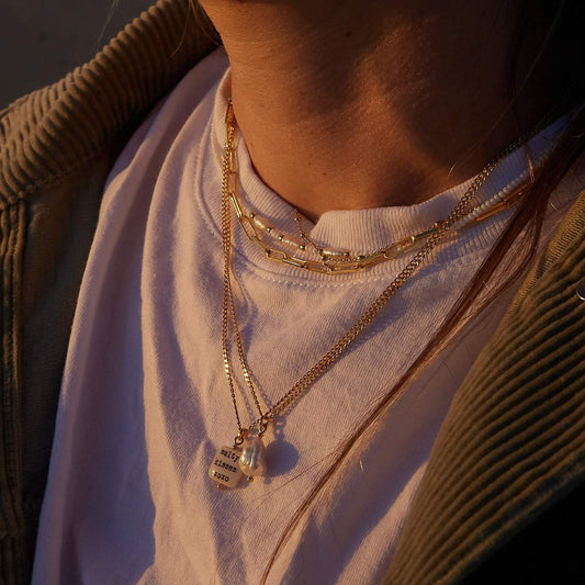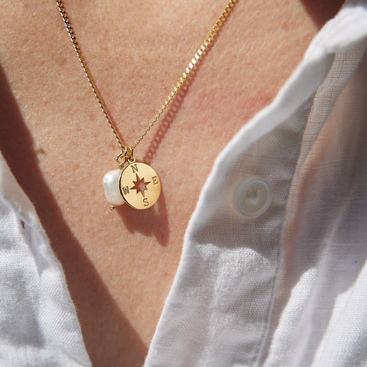 Collier boussole et perles d'eau douce en argent sterling plaqué or 24 carats