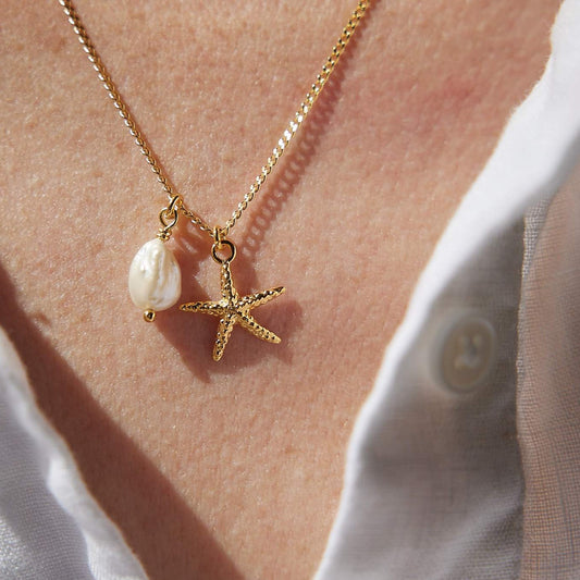 Collier étoile de mer et perles d'eau douce en argent sterling plaqué or 24 carats