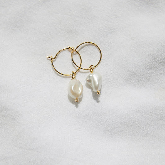 Créoles de perles d'eau douce en argent sterling plaqué or 24 carats