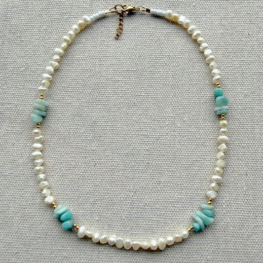 Aquamarine with pearl Necklace