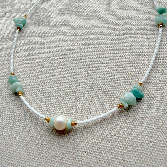 Collier de perles vert menthe avec perles d'eau douce