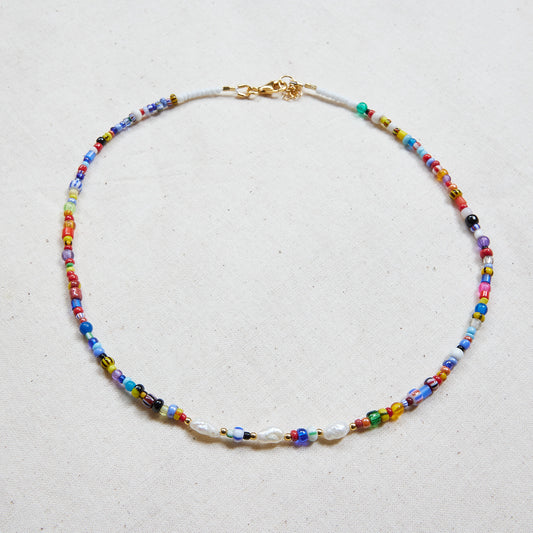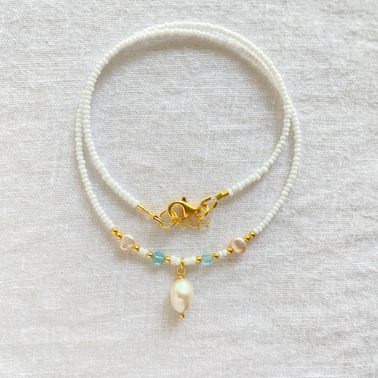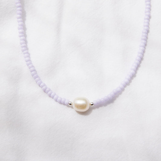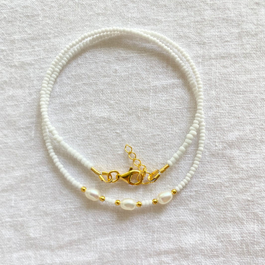 Collier de perles de verre blanc avec perles de culture d'eau douce