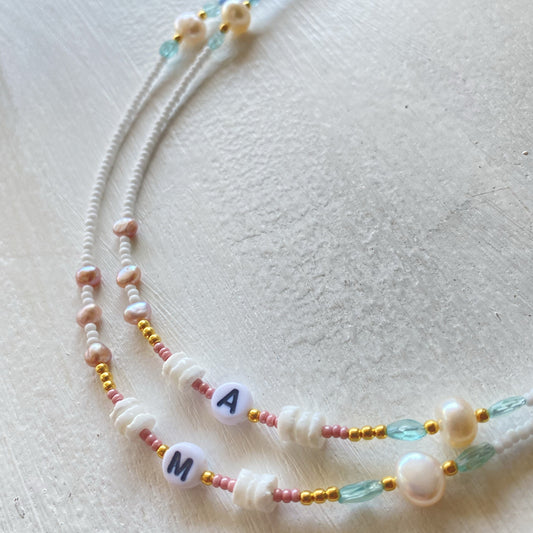Collier de coquillages et de perles d'eau douce en argent sterling plaqué or 24 carats