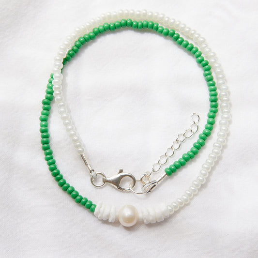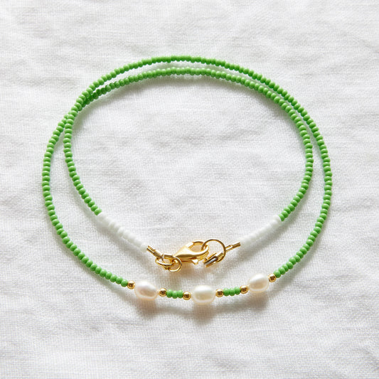 Collier vert lime avec perle d'eau douce