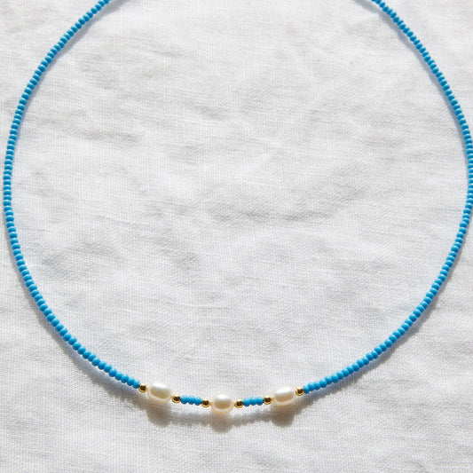 Collier de perles bleu marine avec perles de culture d'eau douce