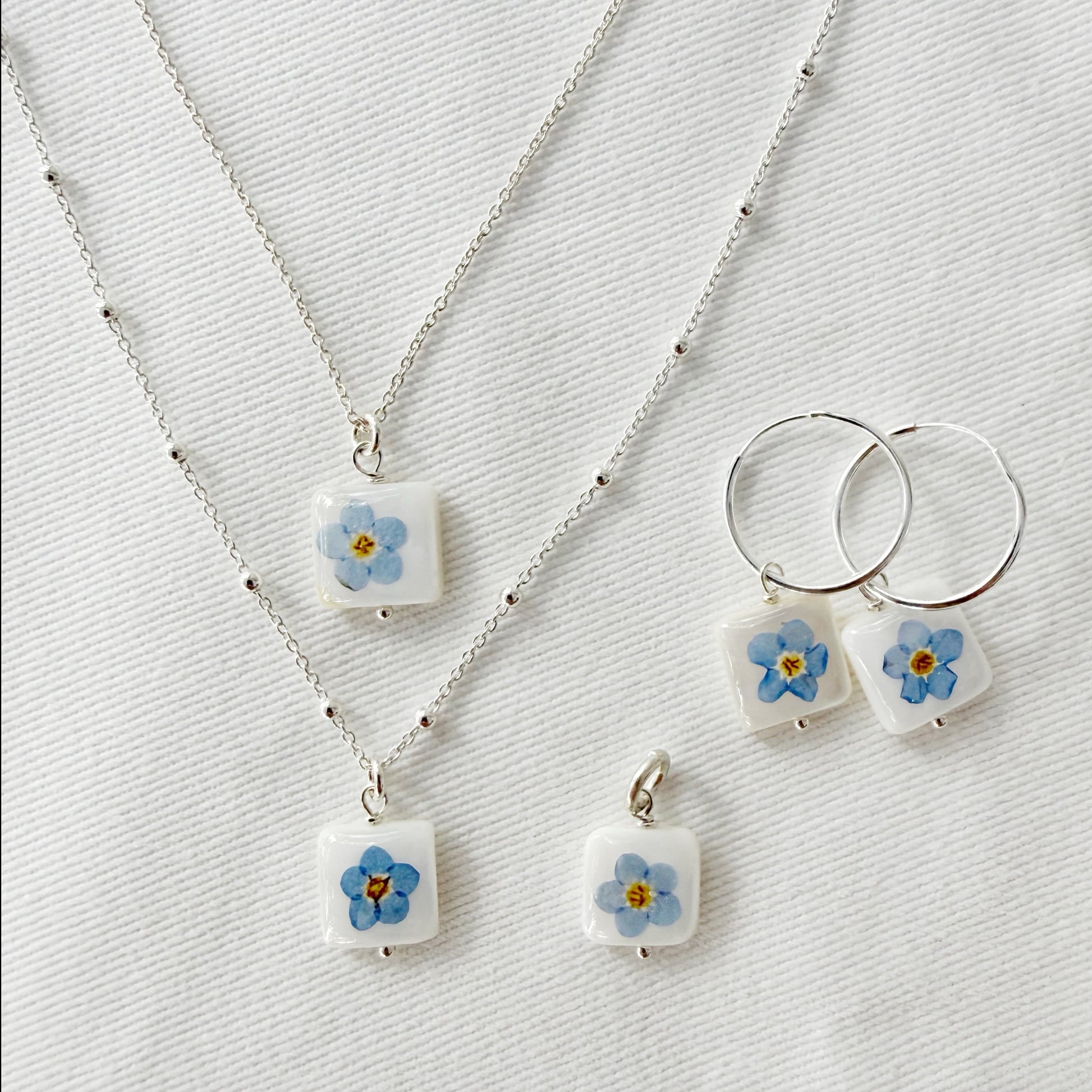 - Handmade mother of pearl pendant with real forget-me-not from Tasmania
