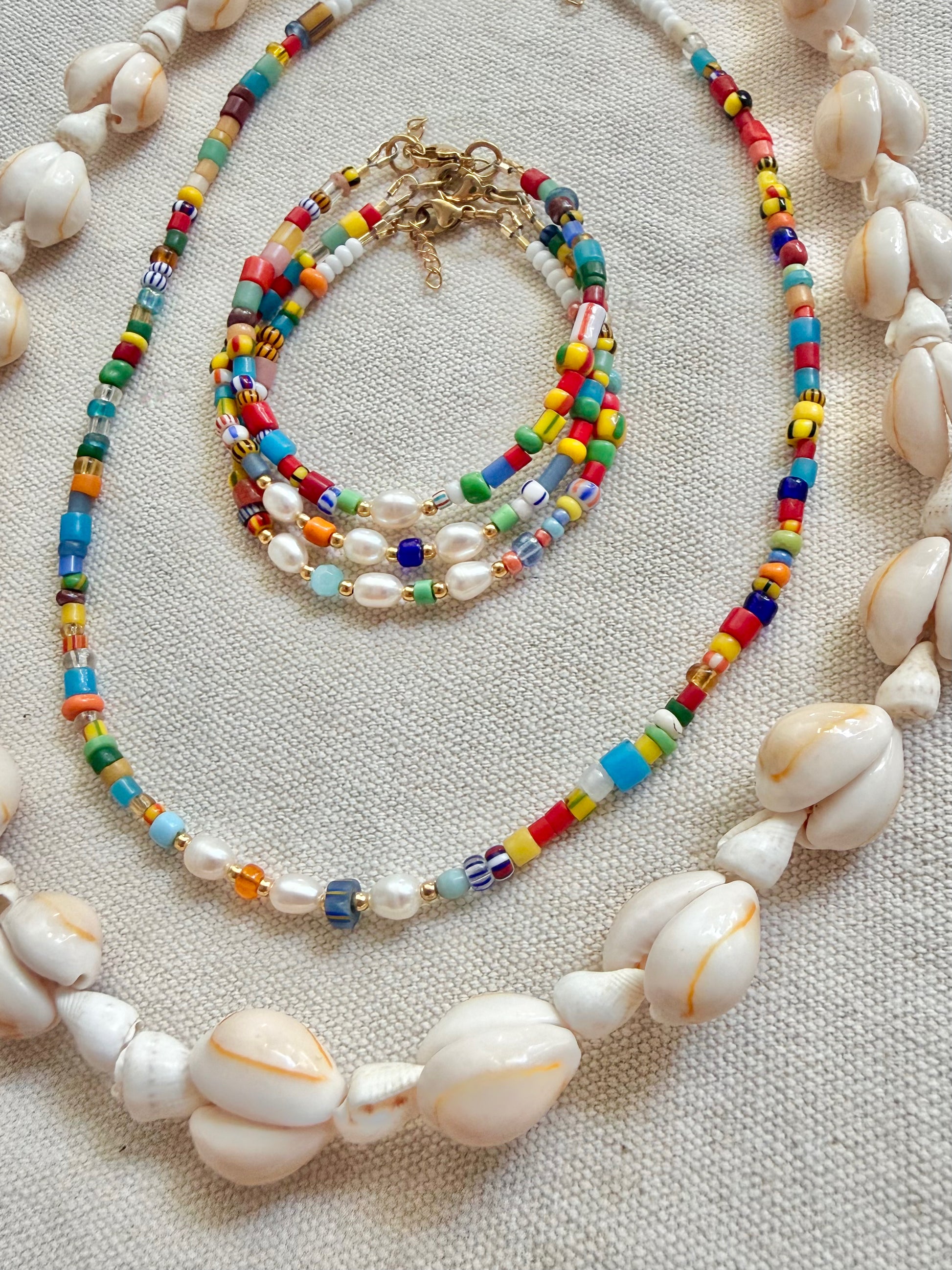 Bracelet perlé de Noël vintage avec perles d'eau douce